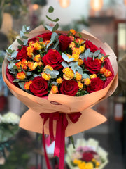 Buchet Trandafiri Roșii și Portocalii - Livrare Flori București