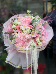 Premium Buchet Mix cu Trandafiri Albi, Roz și Lisianthus și Hortensii