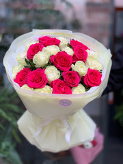 Buchet de Trandafiri Albi si Roz Mix - 21