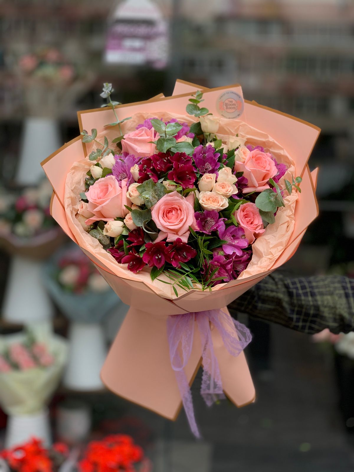 Buchet Trandafiri Alstroemeria Roz Violet Fucsia