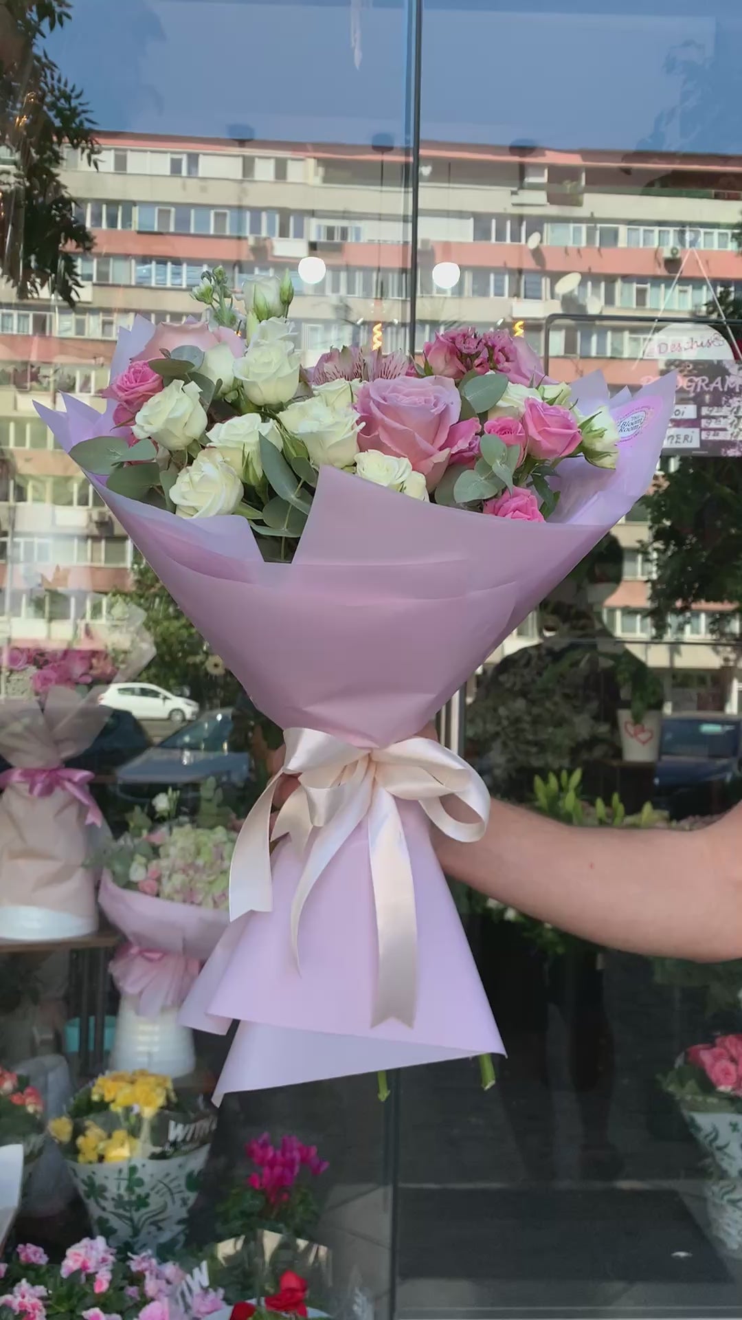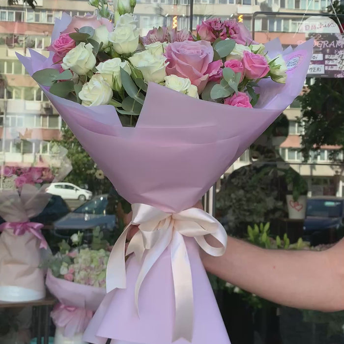 Tag: bouquet misto, rose rosa e bianche, alstroemeria, fiorista di Bucarest, consegna fiori, regalo elegante, The Bloom Room